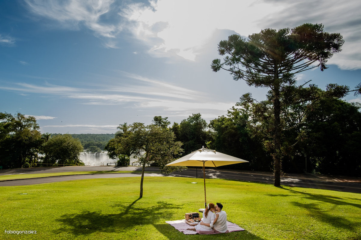 O dia começou nublado e ficamos preocupados se teríamos sol no memento do ensaio. E sim, depois muitas orações o sol apareceu e o tão sonhado ensaio fotográfico com piquenique nas Cataratas do Iguaçu, aconteceu. Foi uma tarde muito agradável e divertida na companhia desse casal super querido. As Cataratas do Iguaçu sempre nos surpreende com uma experiência incrível!!!